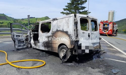 MALLABIA/ELORRIO | Una furgoneta ha cogido esta tarde en la BI-633 subiendo a Trabakua, término municipal de Mallabia. Según ha adelantado el departamento de Seguridad, el fuego se ha debido a una avería del vehículo. Los bomberos del parque de Iurreta acudían al lugar y pasadas las tres y media de la tarde han conseguido sofocar las llamas. La Ertzaintza ha confirmado que no s ehan registrado heridos en el incidente.