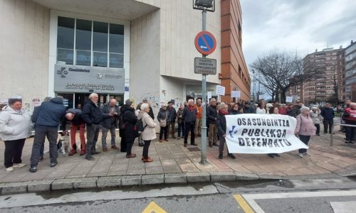 DURANGO | Decenas de pensionistas de Durangaldea se han movilizado este lunes ante el Centro de Salud de Landako, en Durango, para denunciar lo que consideran un grave deterioro de la Atención Primaria en Osakidetza y la falta de coordinación entre el sistema sanitario y los servicios de cuidados. La movilización, convocada por el Movimiento de Pensionistas de Durango, vuelve a sacar sus reivindicaciones a la calle en defensa de una sanidad pública “universal, cercana y de calidad”.