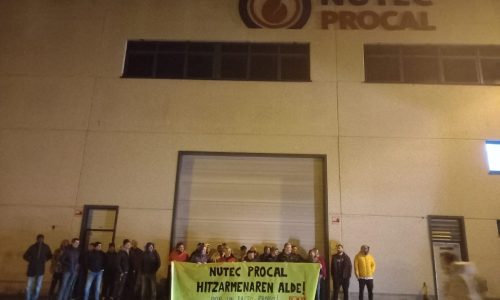 BERRIZ | Los trabajadores de la empresa Nutec Procal en la localidad berriztarra, han comenzado una huelga esta pasada noche por la negociacioón del convenio. Según han dado a conocer desde el sindicato LAB, el seguimiento de la movilización en el turno de esta pasada noche ha sido del 100%. Tras la pancarta «Nutec Procal, hitzarmenaren alde», se han movilizado en el arraque de esta huelga.