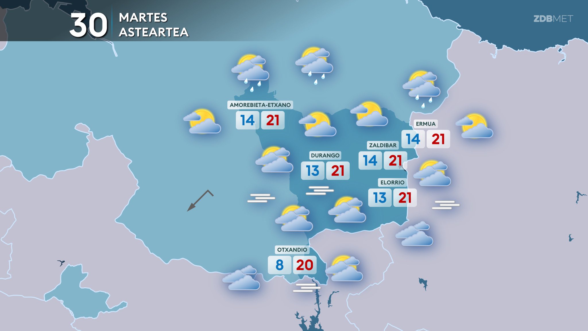 Pronóstico del tiempo para hoy martes PREVISIÓN: Zaldibar Meteo