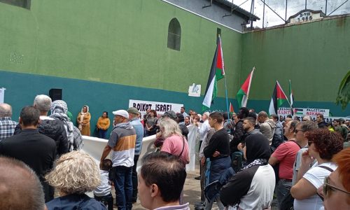 En el escrito que se leía durante el acto, las organizaciones convocantes denunciaban que “Israel aplasta el derecho internacional, las órdenes de la Corte Internacional de Justicia, las resoluciones de la ONU, los derechos humanos y la vida”.  Asímismo, los convocantes manifestaban que “no detendrán esta locura hasta que consigamos que  nuestros gobiernos impongan sanciones económicas, embargo de armas y suspendan las relaciones comerciales con los responsables de este genocidio”.