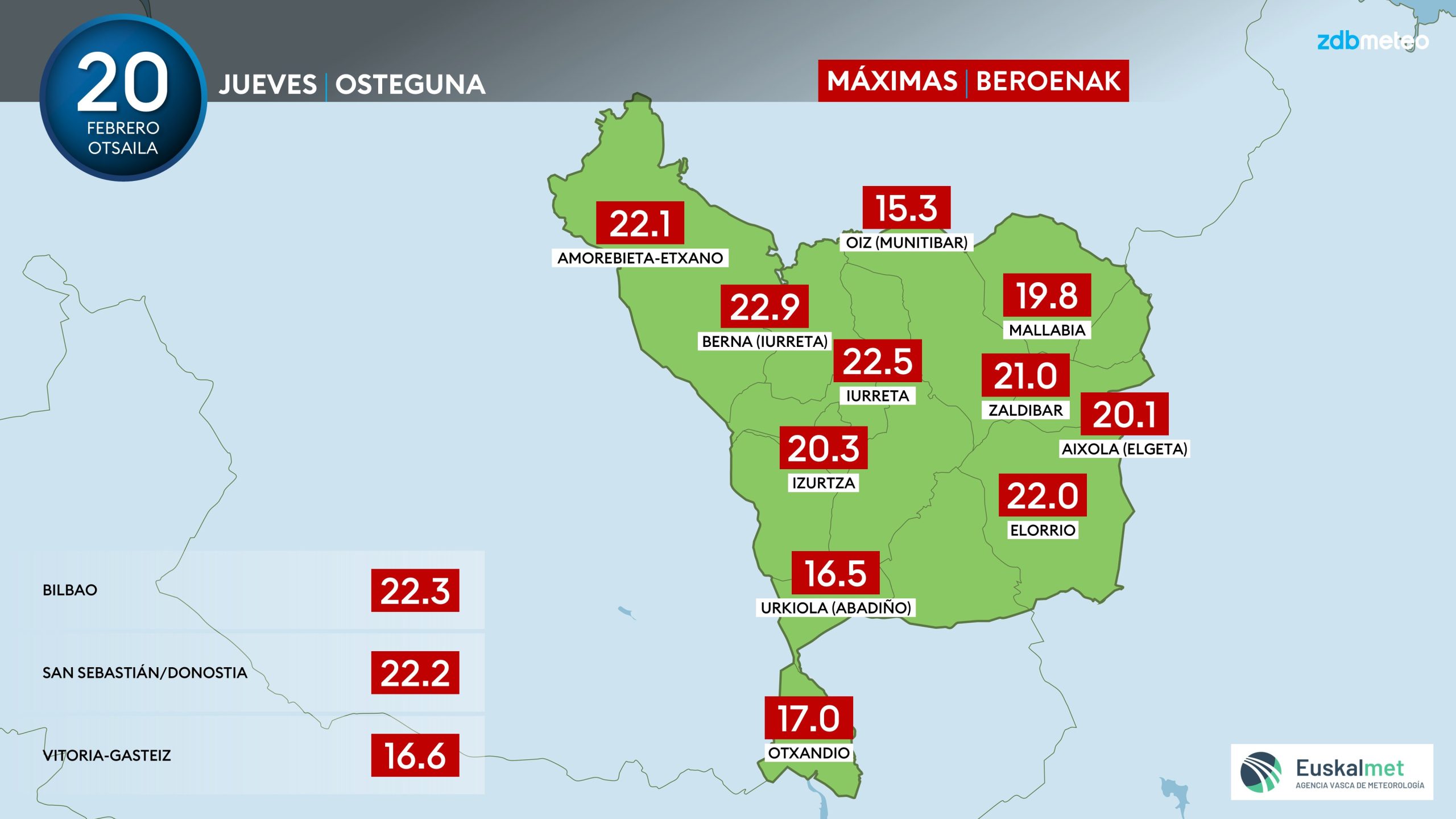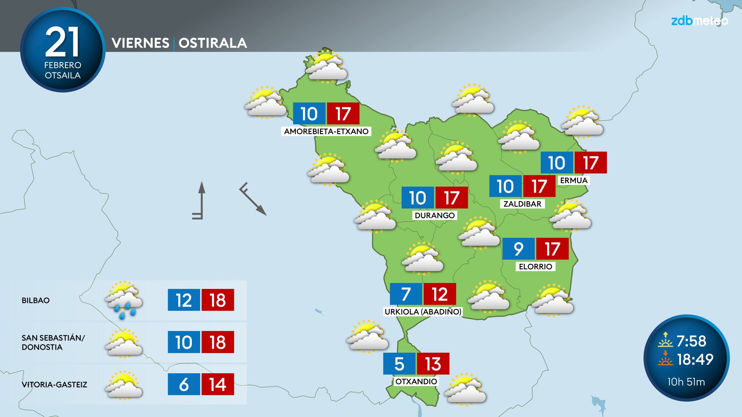 EGURALDIA | El tiempo será más inestable los próximos días en Durangaldea, varios frentes dejarán más nubes, algunas lluvias a partir de esta tarde-noche lo que hará resfrescar el ambiente con máximas que descenderán de los 22 grados del jueves. El domingo