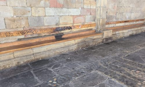 – El Pórtico de Santa María: siendo esta iglesia el centro de Durango y una basílica, está totalmente dejado y sucio. Los bancos están sucios y llenos de pintadas, el suelo lleno de cagadas de palomas y sucio. Además, me da la sensación de que solo se limpia con agua en fiestas. Teniendo en cuenta la utilidad que se le da y el lugar en el que se encuentra, creo que es necesario mantener una limpieza y un ambiente de ocio como el que se merece el sitio. Ya que también habitualmente suele haber gente bebiendo y fumando, creando unos hábitos y unas dinámicas nada saludables ni positivas para el pueblo.