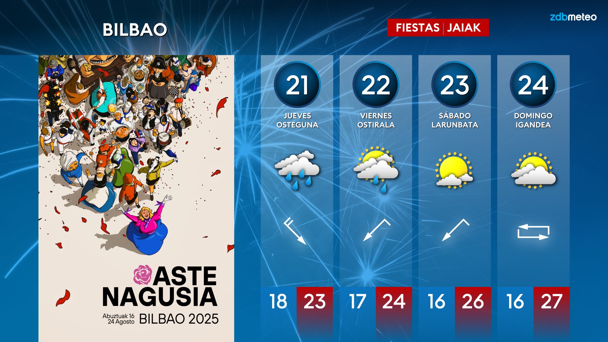 EGURALDIA | El miércoles aumentará la inestabilidad. Seguiremos con chubascos en el norte y con temperaturas en torno a 21-25 ºC en todo el territorio. La nubosidad estará algo más rota en general, pero a lo largo de la jornada irán entrando desde el mar nubarrones que dejarán chubascos en la vertiente cantábrica, sin descartar tormentas ocasionales y chubascos localmente intensos. En el sur la nubosidad será más escasa y se abrirán amplios claros. El viento seguirá soplando del noroeste con intensidad, sobre todo a partir de la tarde.