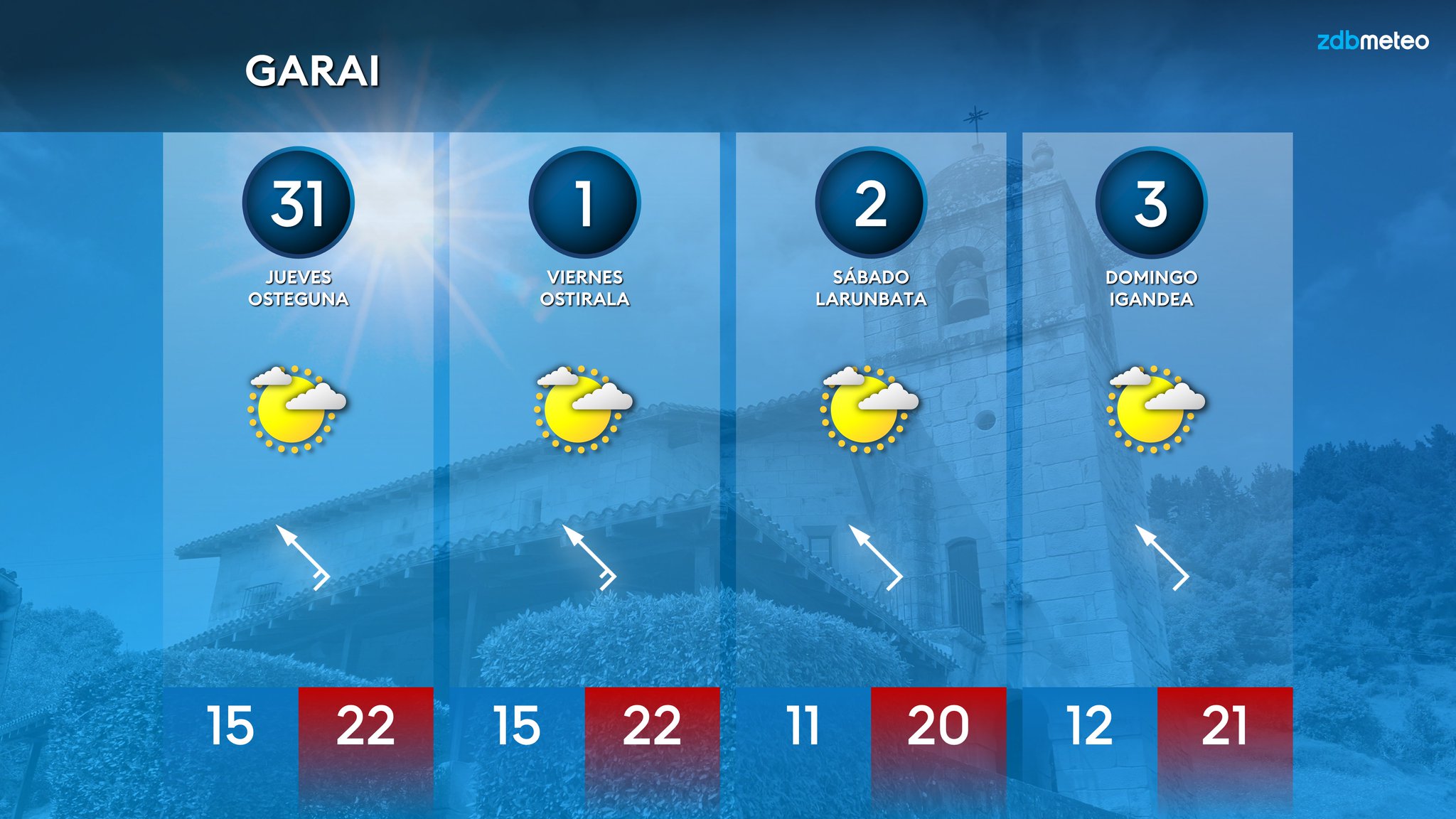 EGURALDIA | A primeras horas del miércoles la nubosidad irá a más. Durante las horas centrales el cielo estará nublado, aunque apenas lloverá. Por la noche el riesgo de la lluvia irá remitiendo y la nubosidad disminuirá. Temperaturas máximas sin demasiados cambios. Viento del este, predominando el sureste a partir de la tarde.