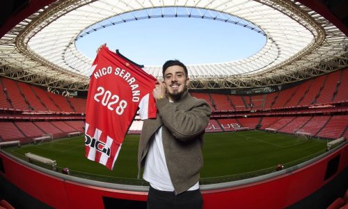 EUP! | El Athletic Club y el jugador Nico Serrano han llegado a un acuerdo para ampliar la vinculación que tenían dos temporadas, hasta el 30 de junio de 2028. A sus 21 años, el talentoso jugador navarro se reafirma como apuesta deportiva de la entidad y ha rubricado su nuevo contrato este mediodía en San Mamés, en presencia del presidente, Jon Uriarte, y del director general de Fútbol, Mikel González. En la línea trazada por la Junta Directiva, tiene una estructura salarial con un componente de variable por objetivos.
