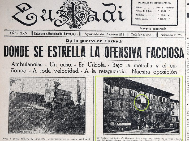 Durangoko bonbardaketaren 85. urteurrena DURANGO | Durangoko bonbardaketa oso-osorik Angelo Zoia hegazkinlari-argazkilari espezialistak jaso zuen iruditan. Horietako argazki asko Erromako “Ufficio Storico – Archivio Stato Aeronautica Militare”-n daude artxibatuta.