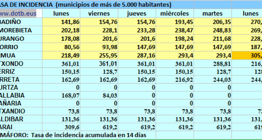 Zaldibar suma dos casos, Durango, Amorebieta y Elorrio uno