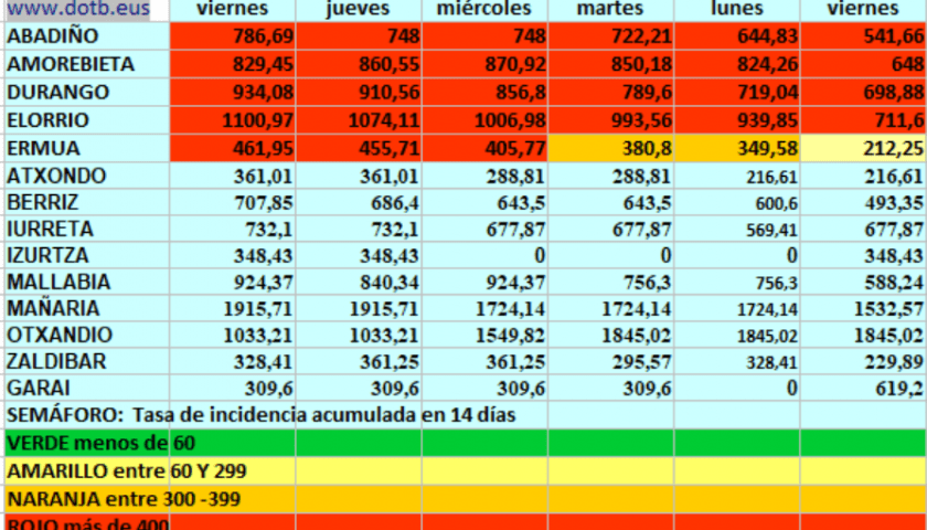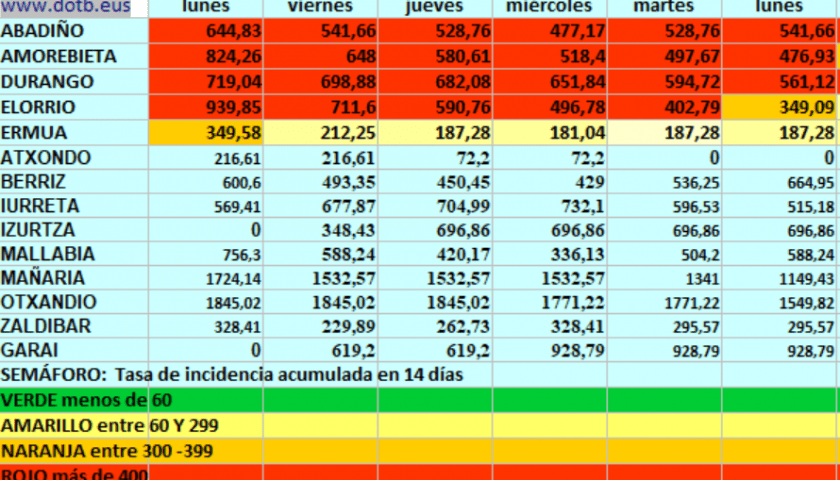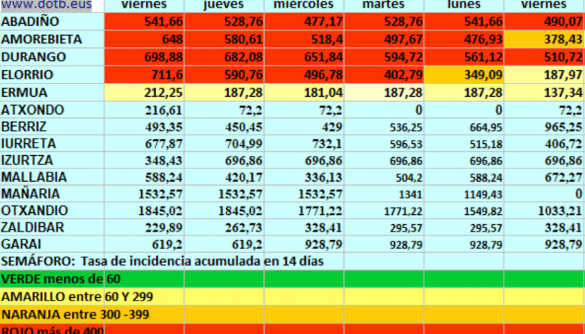 Amorebieta suma 11 contagios más, Ermua 6, Abadiño y Elorrio 4, Berriz 3, mientras que Iurreta y Mallabia suman un caso más DURANGALDEA.- En las últimas 24 horas se han registrado 45 casos, 26 menos que ayer. Durango ha sumado 15 casos, Amorebieta 11, Ermua 6, Abadiño y Elorrio 4, Berriz 3, mientras que Iurreta …