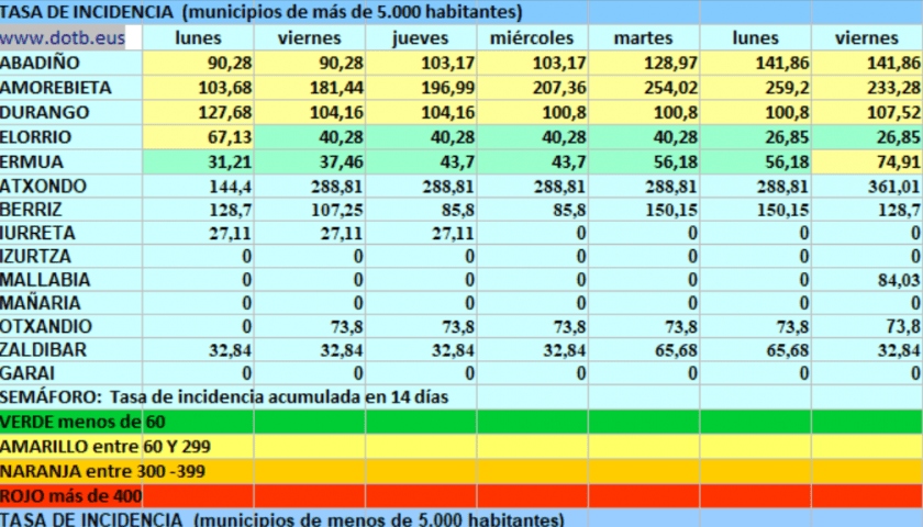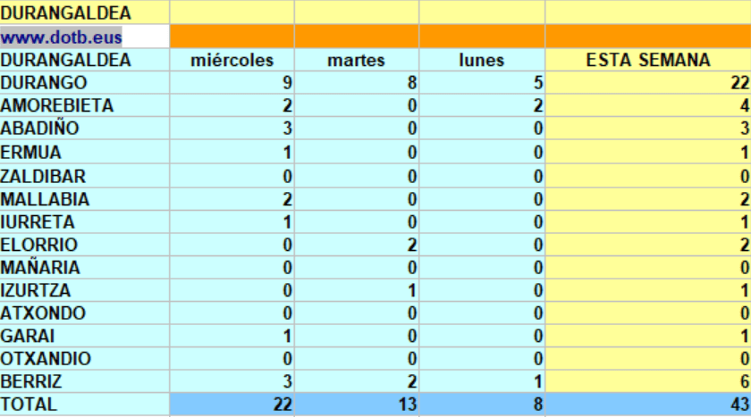 [dotb.eus] Durango y Berriz suman 14 de los 20 nuevos casos de Durangaldea