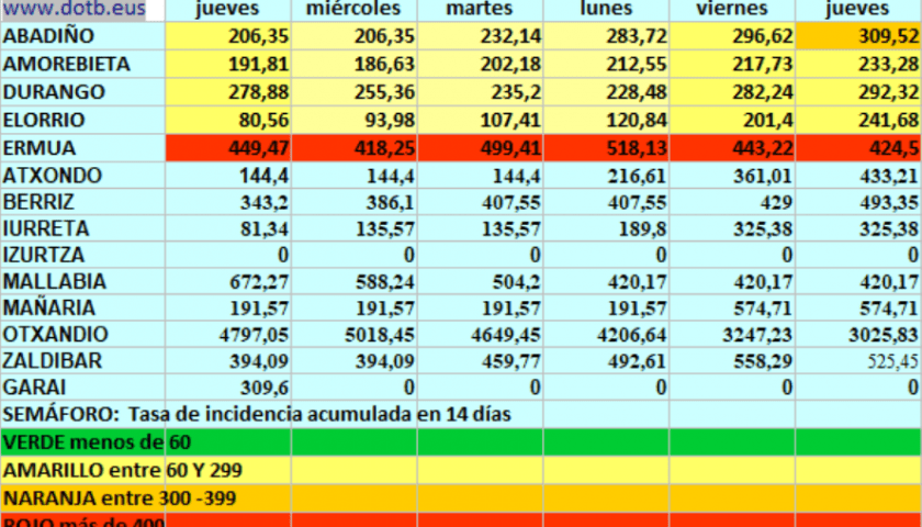 [dotb.eus] Durango en zona naranja tras registrar 15 de los 46 casos desde el viernes en la comarca