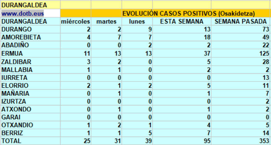 Seis en Ermua, 3 en Abadiño, 2 en Amorebieta, Durango y Zaldibar y un caso en Iurreta y Berriz DURANGALDEA.- En las última horas se han registrado 17 casos nuevos. Seis en Ermua, 3 en Abadiño, 2 en Amorebieta, Durango y Zaldibar y un caso en Iurreta y Berriz. Tasa de incidencia Casos en Euskadi …