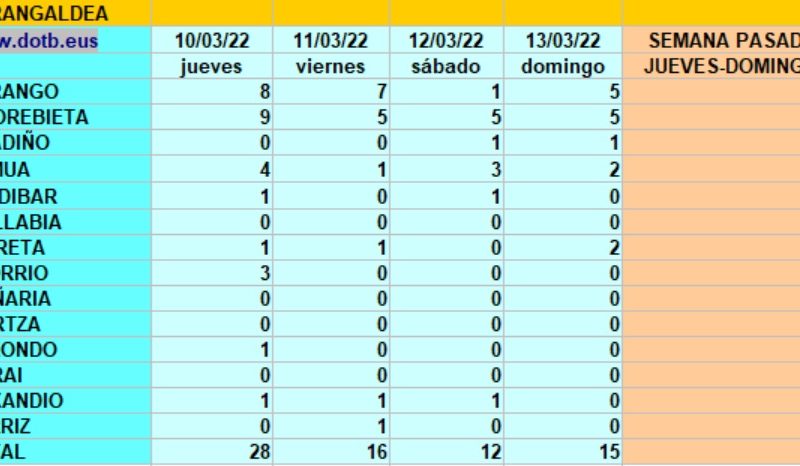 Durangaldea registra 179 casos durante la semana pasada, 72 de jueves a domingo
