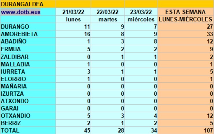 Durangaldea registra 179 casos durante la semana pasada, 72 de jueves a domingo Leer más »