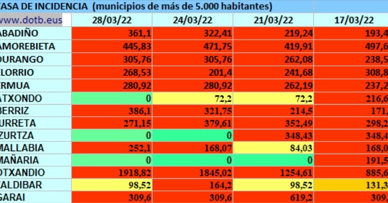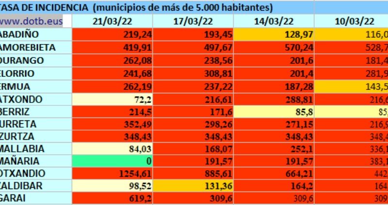 Osakidetza confirma el fallecimiento de 18 personas como consecuencia del covid en Euskadi DURANGALDEA | La comarca cierra la semana con 179 nuevos casos, 72 de jueves a domingo. Comparando con la anterior supone en ligero ascenso de 27 positivos, teniendo en cuenta que se registraron 152, 82 de jueves a domingo. Aún asi la …
