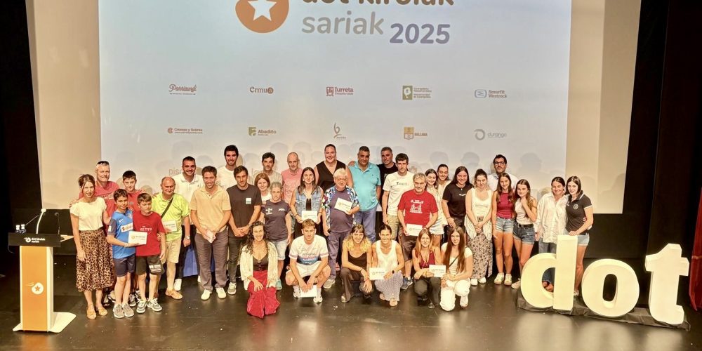 14 entidades y deportistas reconocidos en esta cuarta edición AMOREBIETA-ETXANO | El Zornotza Aretoa acogía esta jueves la cuarta edición de la gala DOT KIROLAK SARIAK. Catorce han sido los premiados en este 2025, trece conocidos y uno sorpresa. Los premiados de este año serán: Kings Durango Voluntariado Abadiño Hermanas Barrutieta: Uribarri y Goreti (Rugby) Hot Shots …