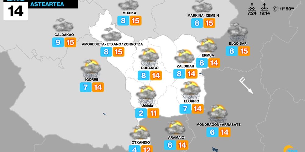 Mañana se espera que las máximas sigan subiendo en la comarca EGURALDIA | El miércoles nubes medias y altas y recuperación de las temperaturas máximas. A pesar de que por la tarde esperamos brisas, el viento predominará durante buena parte de la jornada del sur flojo, por lo que los termómetros volverán a rondar los …