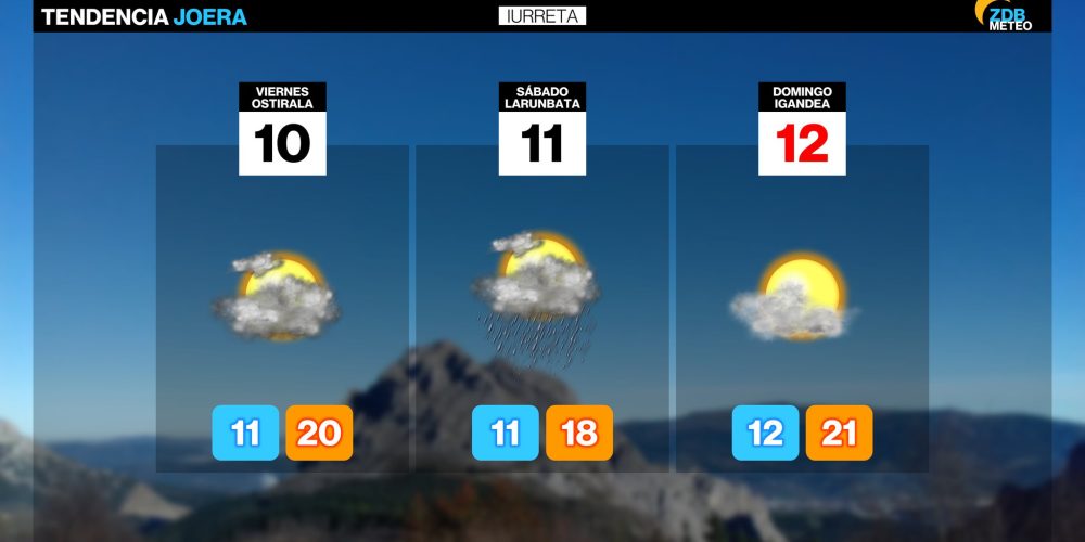 Las temperaturas seguirán siendo agradables rozando los 25 grados hoy domingo EGURALDIA | El domingo amanecerá con abundante nubosidad. Lloverá de forma débil durante la mañana. Por la tarde las nubes irán a menos, quedando algunos intervalos de nubes medias y altas. El viento del sur soplará suave y elevará las temperaturas máximas por encima …