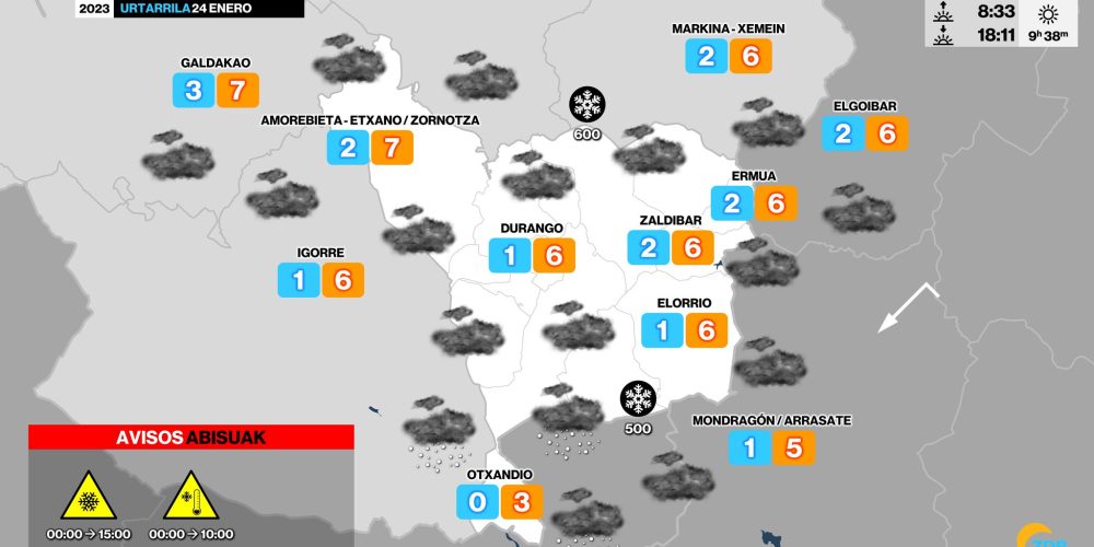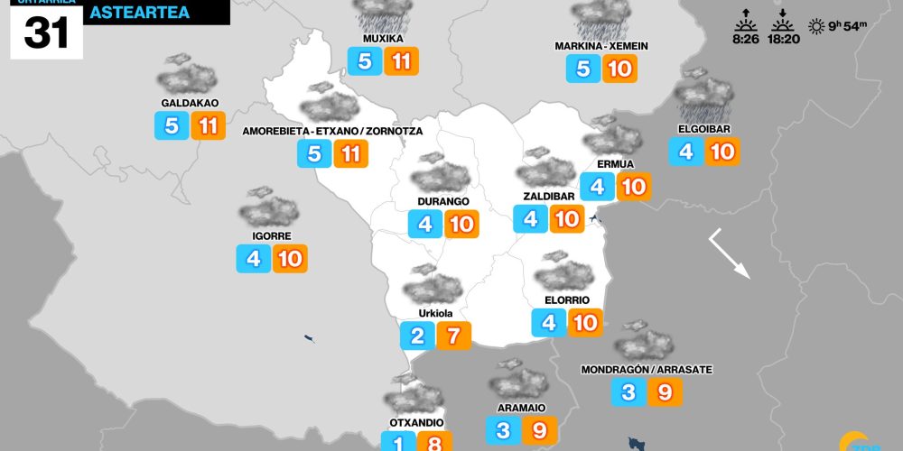 Las máximas hoy superarán los 10 grados EGURALDIA | A primeras horas del miércoles abundarán las nubes y lloverá de manera ocasional. La cota de nieve se situará en torno a 1400-1500 metros. A lo largo de la tarde cesará la lluvia y se abrirán algunos claros, aunque de momento seguirá bastante nublado. Temperaturas sin …