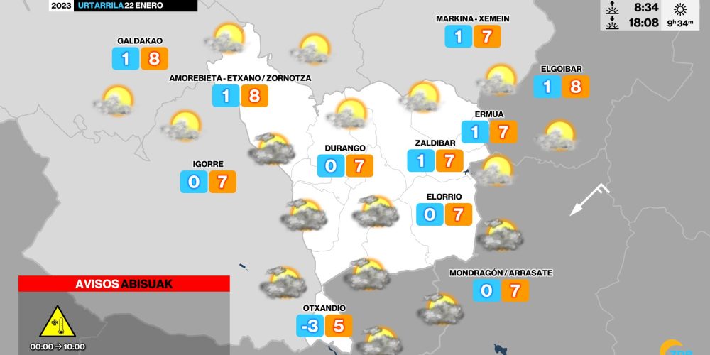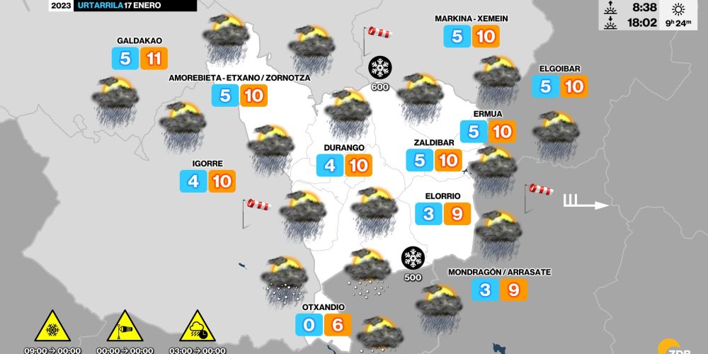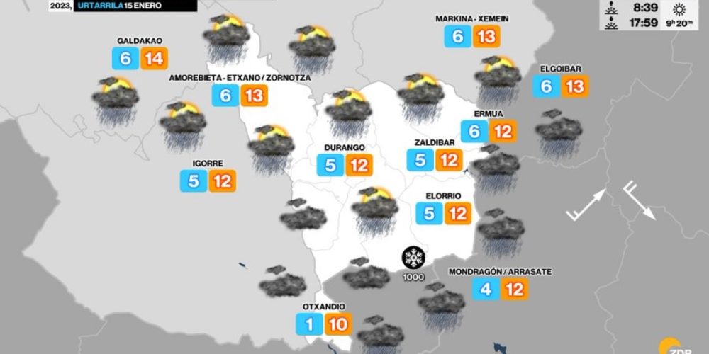 Aunque las precipitaciones serán débiles mañana, la cota se situará en torno a los 300 metros EGURALDIA | El frío ha venido para quedarse. Llevamos varios días con temperaturas muy bajas y heladas, mientras las previsiones indican que mañana volverán las nieve a cotas bajas, aunque serán débiles y dispersas. De momento hoy domingo tendremos …
