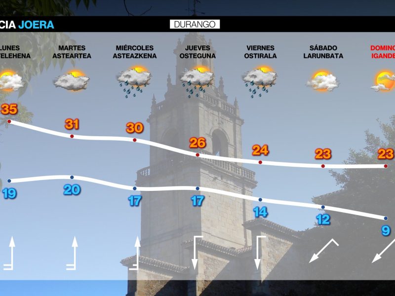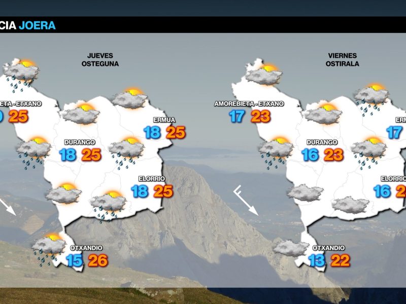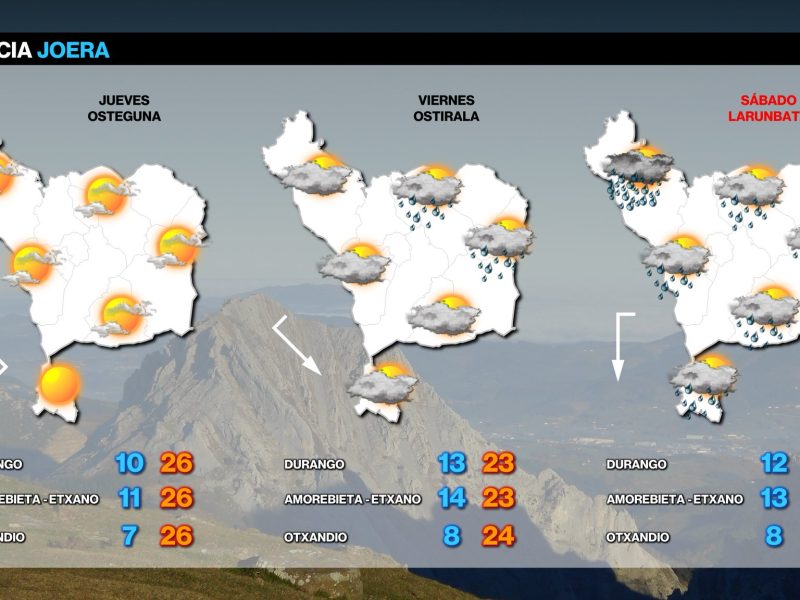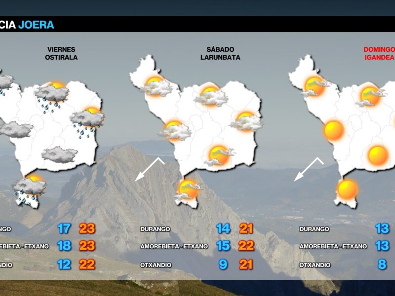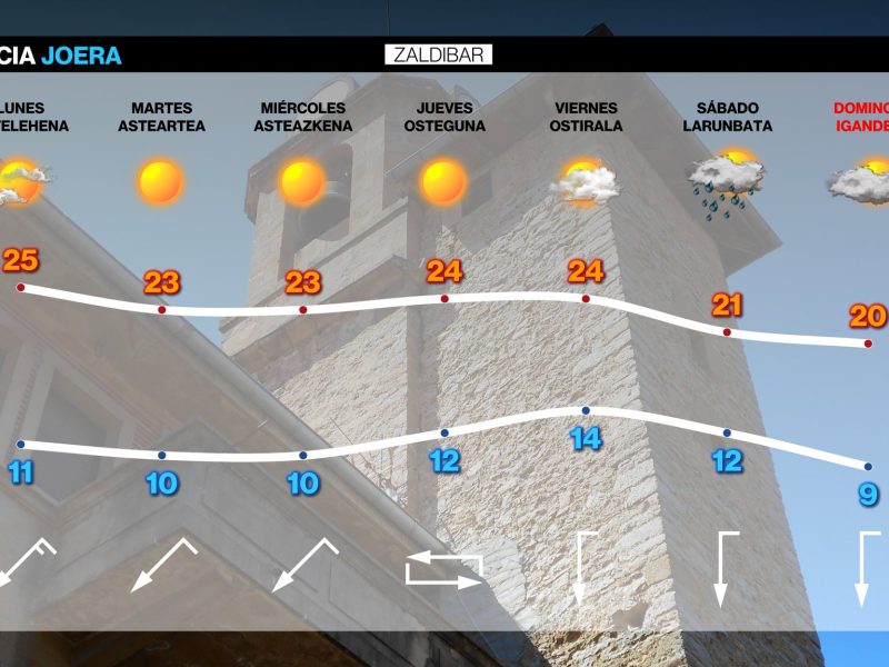 Las máximas rondarán los 25 grados, las minimas 9 grados EGURALDIA | Sin cambios. Podrían formarse algunos bancos de niebla al amanecer, pero el resto del día el cielo se mantendrá poco nuboso. Viento flojo por la mañana y por la tarde el viento se irá fijando del norte, soplando con algo de fuerza. Las …