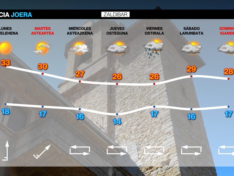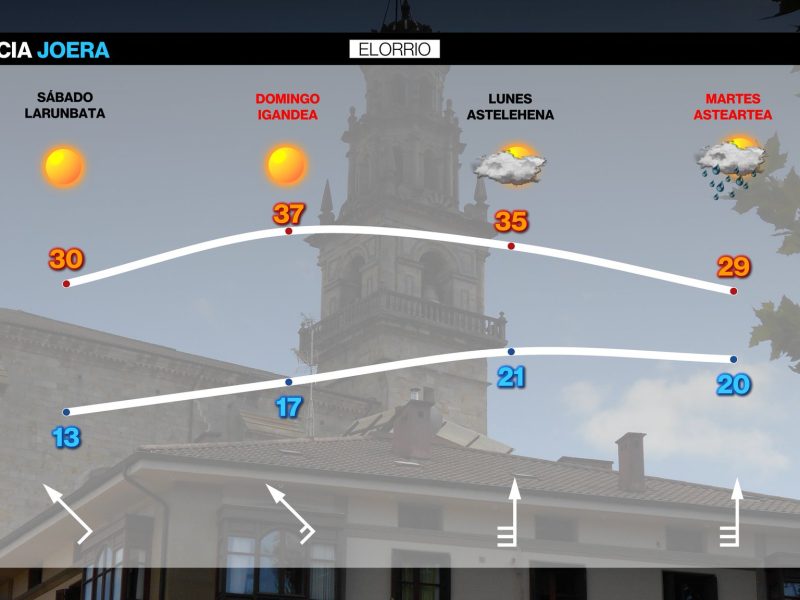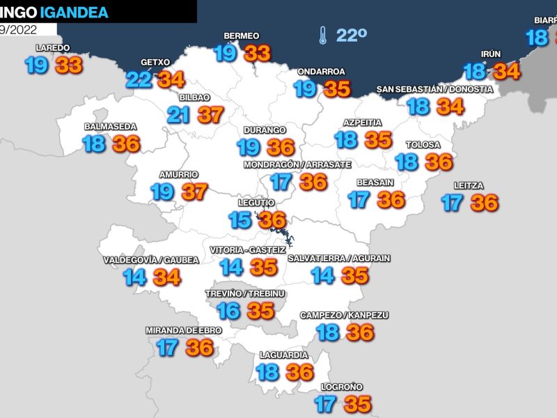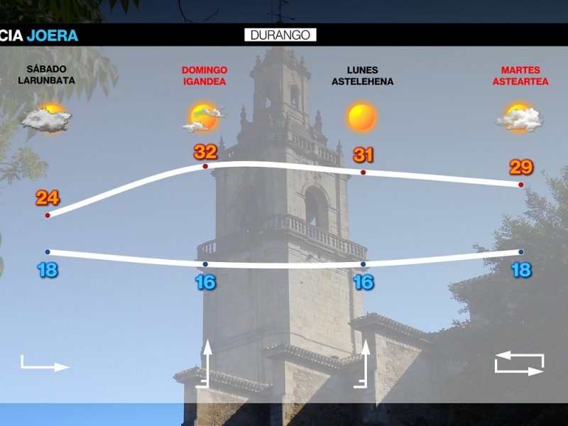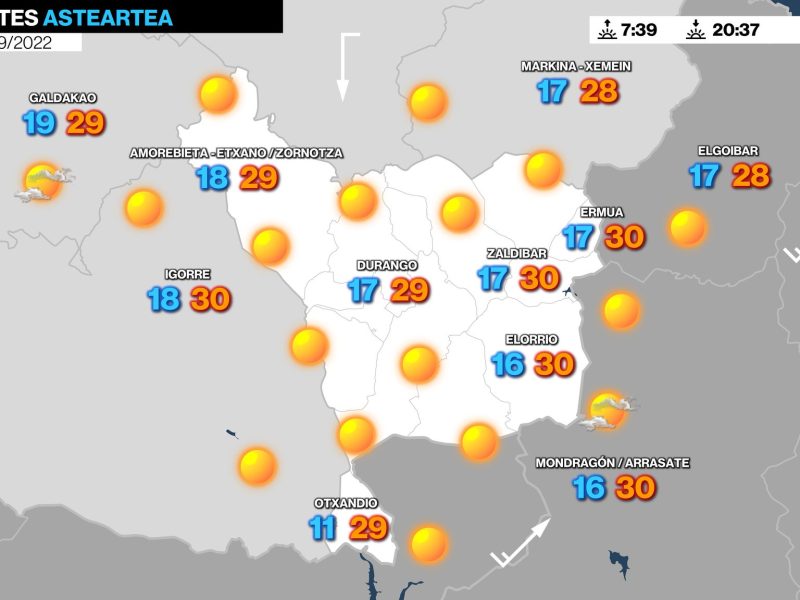 Para mañana lunes también se espera mucho calor EGURALDIA | El domingo calor. El viento sur irá cogiendo fuerza con el paso de las horas y los termómetros rondarán los 35 grados, superando ese valor en algunos puntos, especialmente en Bizkaia. Cielos prácticamente despejados, con algunas nubes medias y altas por la noche. En zonas …