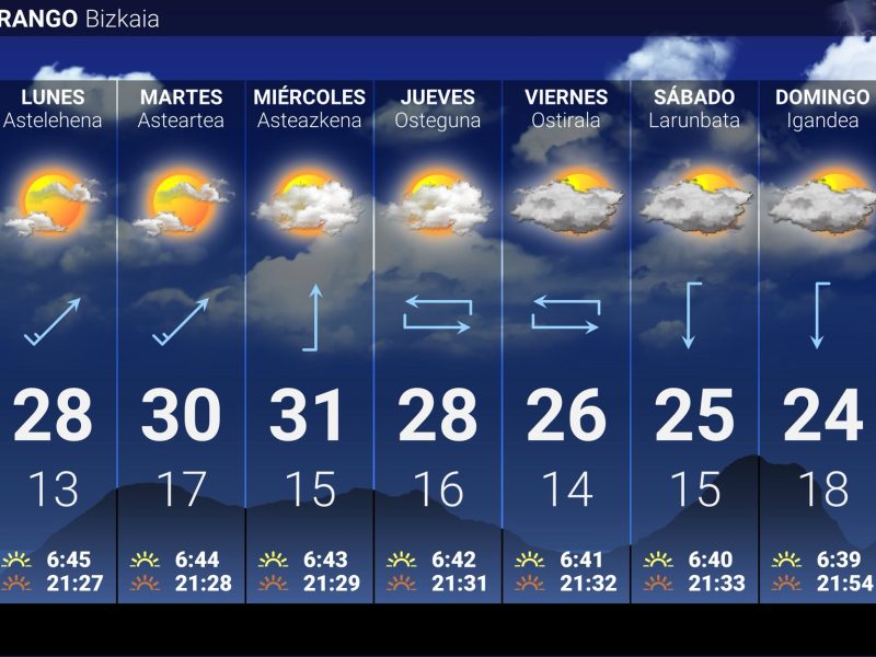 Las máximas se quedarán en los 15/16 grados EGURALDIA | El martes lloverá algo más y perderemos otros 2-3 grados en los termómetros. La lluvia será protagonistas, donde ocasionalmente se dará en forma de chaparrones. El viento soplará del noroeste. Las temperaturas máximas se quedarán por debajo de los 20 grados. MIÉRCOLES | El miércoles …