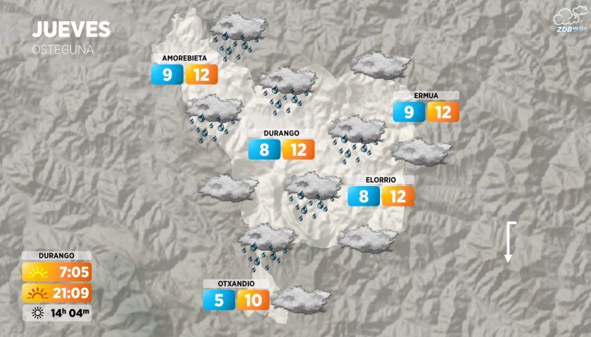 [dotb.eus] Jueves con intervalos nubosos a la mañana, alguna llovizna a la tarde