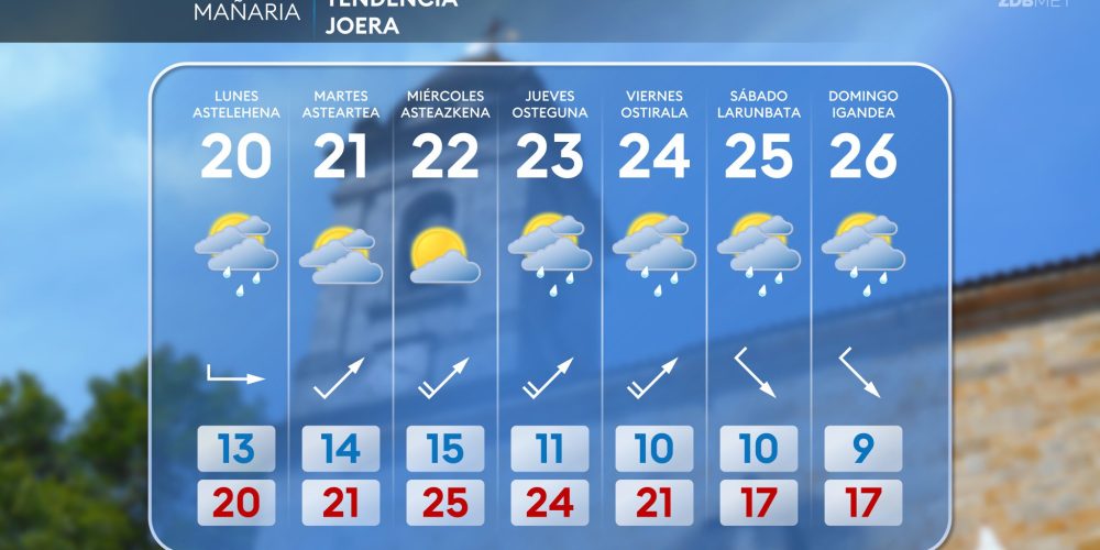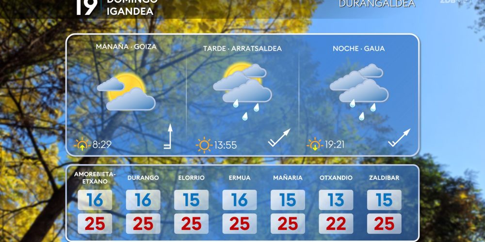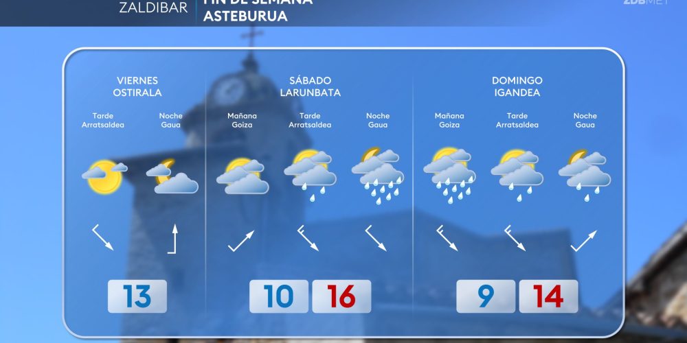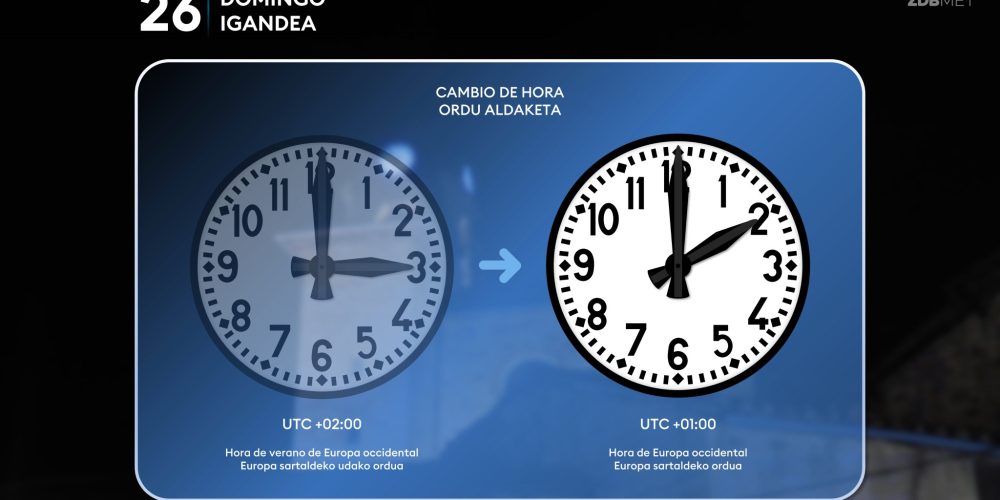 Esta próxima noche habrá que retrasar una hora los relojes, a las tres serán las dos EGURALDIA | El sábado el tiempo se volverá más inestable, con abundante nubosidad y descenso de las temperaturas máximas. A lo largo del día predominarán las nubes y llegarán lluvias, que serán más frecuentes durante la segunda mitad de …