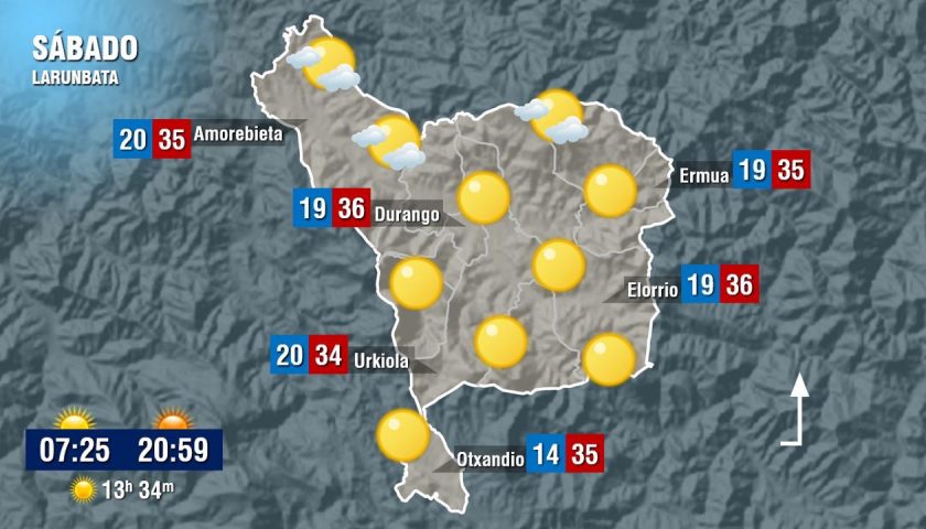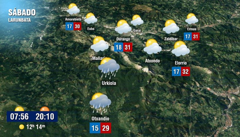 [dotb.eus] Calor viernes y sábado, el domingo más fresco y revuelto con algunas lluvias