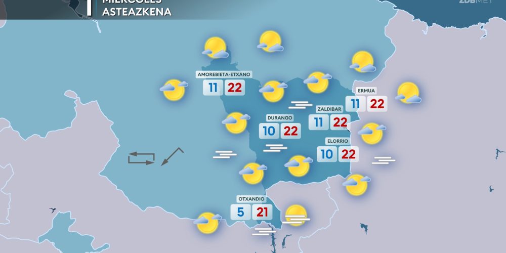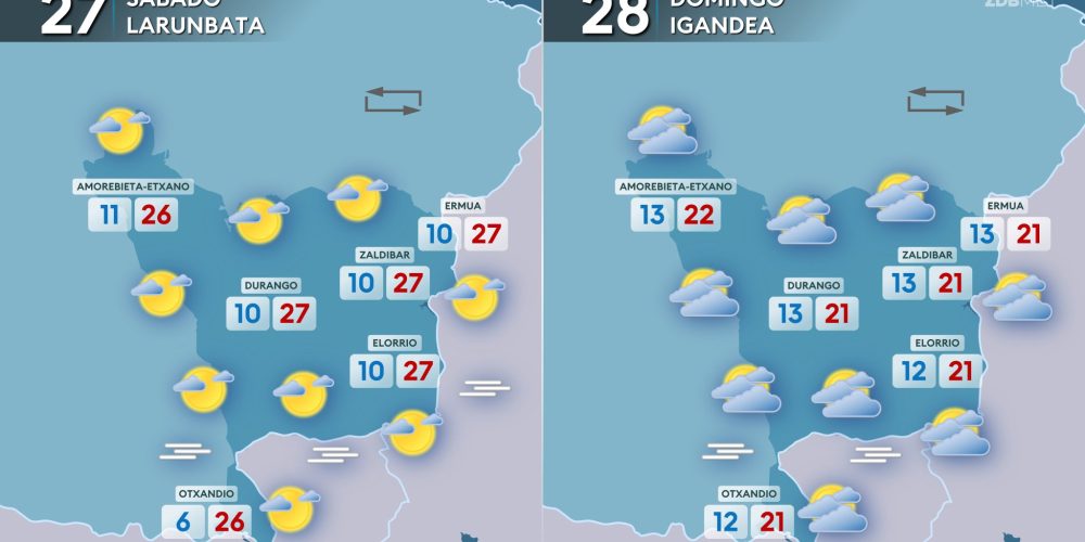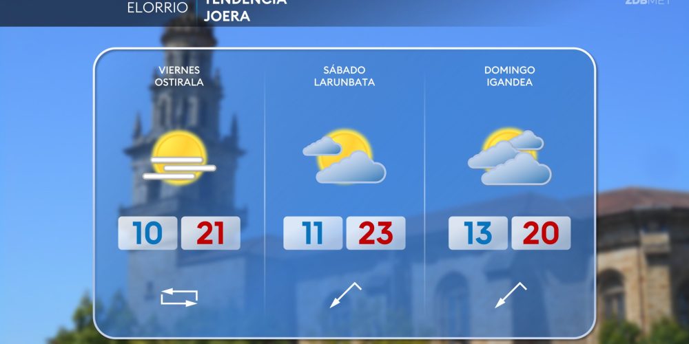 Se espera un descenso notorio de las temperaturas EGURALDIA | El sábado llegará un frente durante la tarde que dejará cielos cubiertos y algunas lluvias en la mitad norte. Pero hasta ese momento predominará el ambiente soleado, con algunas nubes altas, y las temperaturas serán suaves. Por la tarde, con el paso del frente, el …