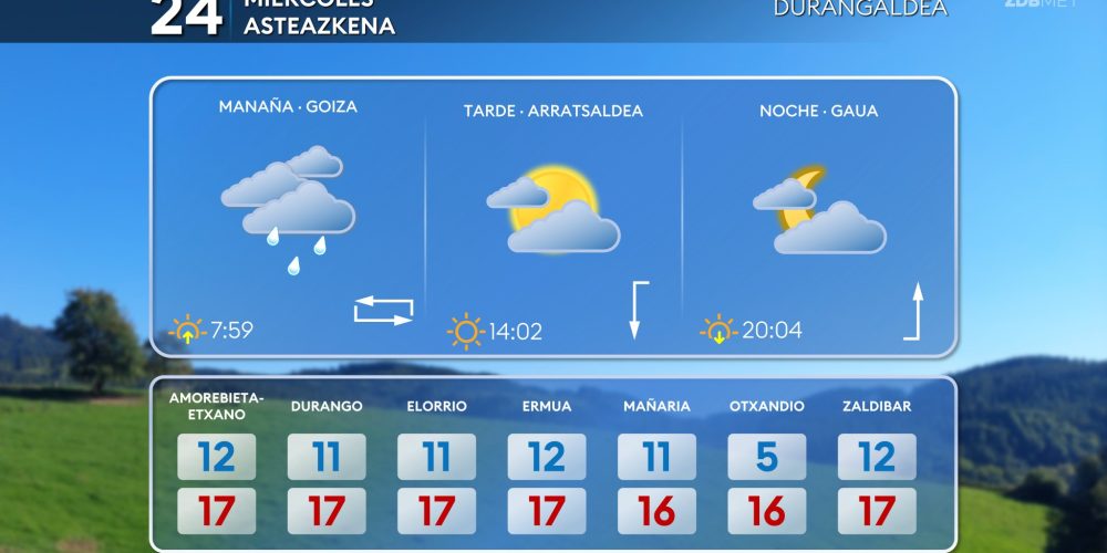Las temperaturas máximas se mantendrán sin grandes cambios, pudiendo subir ligeramente EGURALDIA | El miércoles continuaremos con temperaturas frescas, eso sí, los chubascos serán mucho más dispersos y ocasionales. Por la mañana predominarán las nubes y será cuando puede llover, sobre todo en la vertiente cantábrica. Por la tarde se acabarán por imponer los claros. …