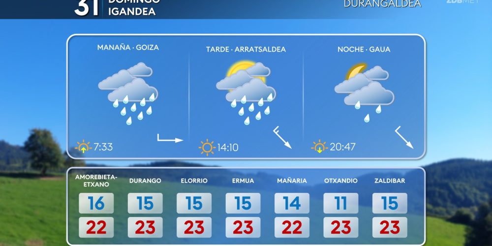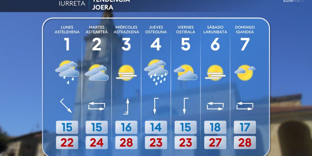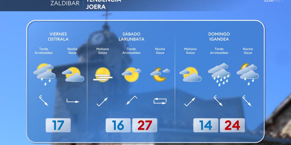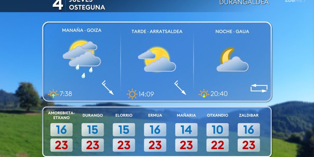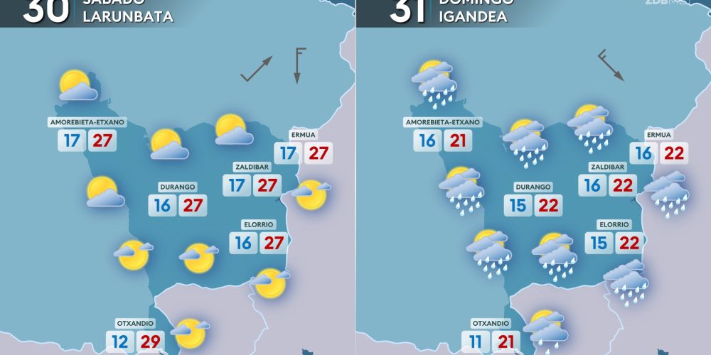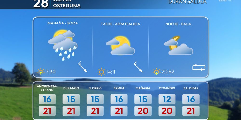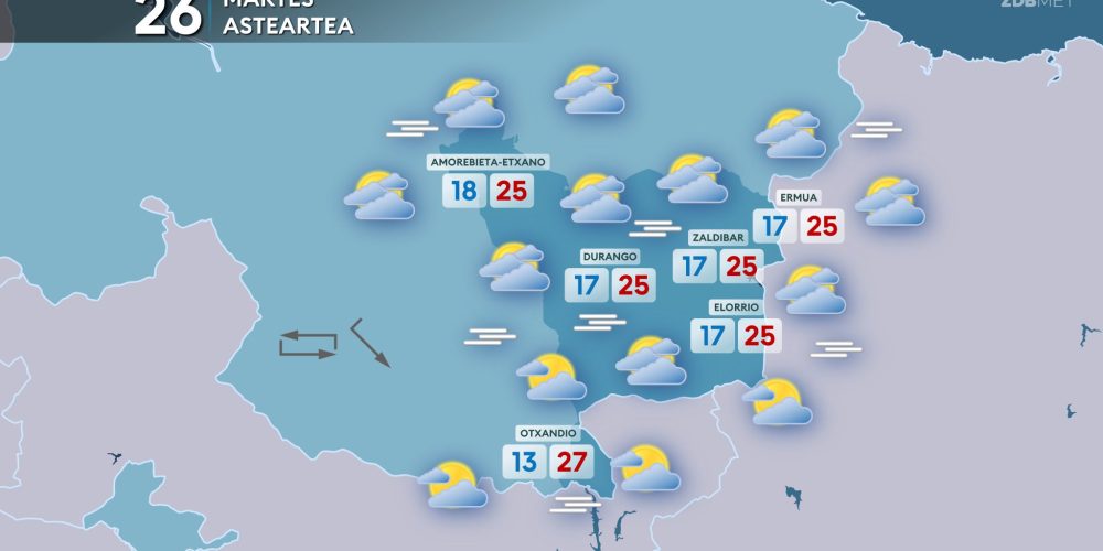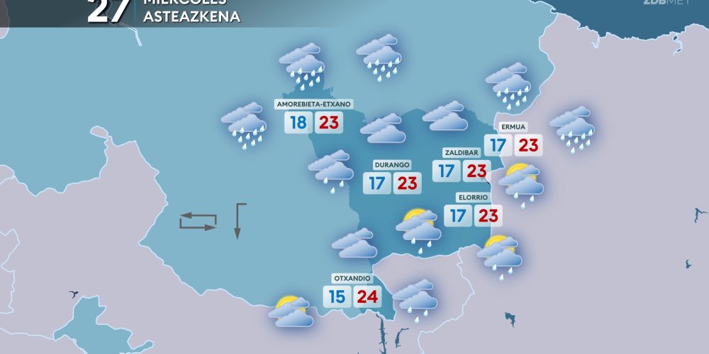 Las temperaturas máximas bajarán hasta los 21-24 grados EGURALDIA | El jueves descenso de las temperaturas y algo de lluvia, pero tendiendo a mejorar durante la tarde. Muchas nubes durante la primera mitad del día, sobre todo en la mitad norte, con lluvias que afectarán especialmente a la vertiente cantábrica. A partir de la tarde …
