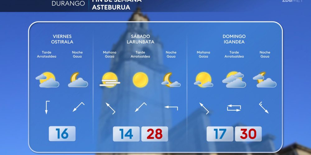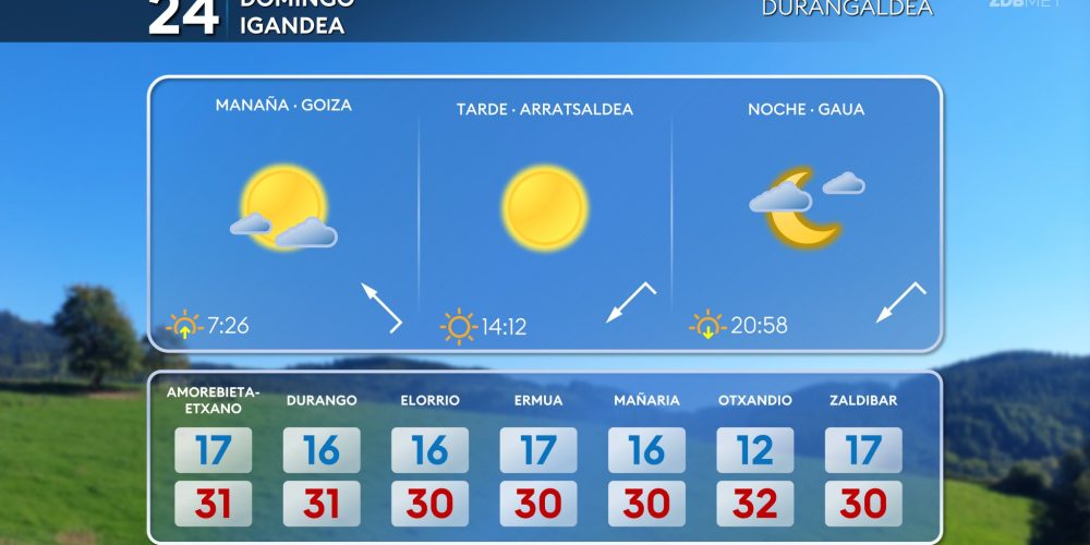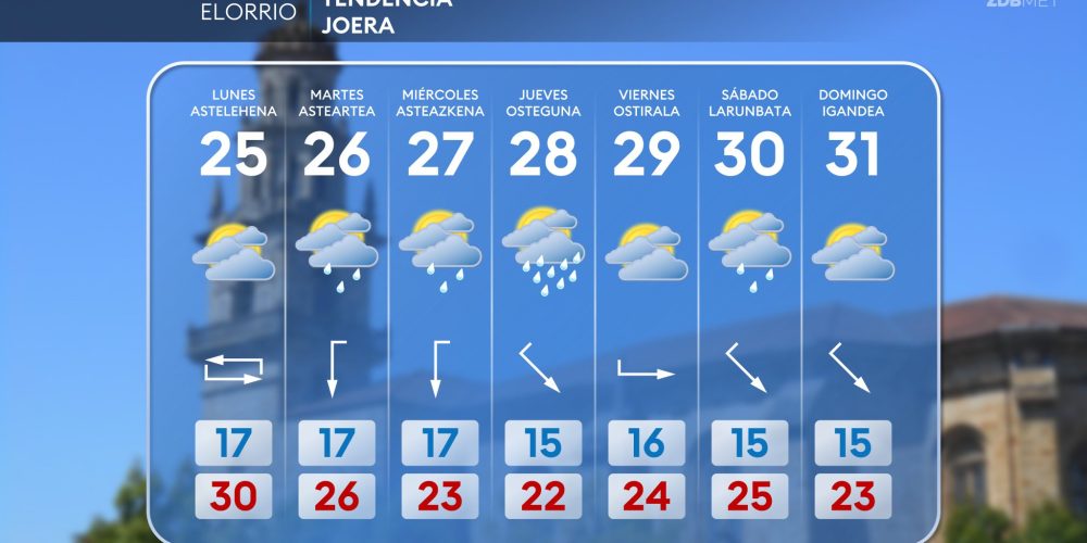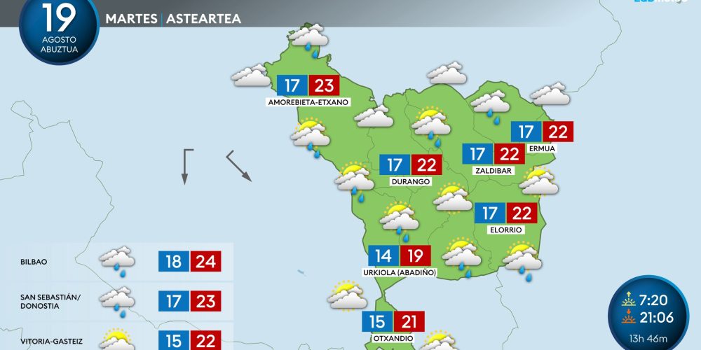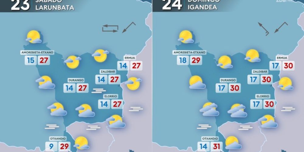 Las temperaturas descenderán de los 30 grados de hoy lunes a los 25 de los próximos días EGURALDIA | Tras un fin de semana veraniego, el tiempo seguirá igual las próximas horas, por lo menos hoy lunes, mañana martes llegarán las nubes y de los 30 grados de hoy se bajarán a los 25 grados …