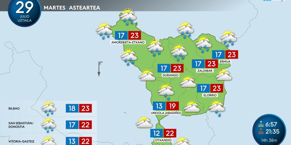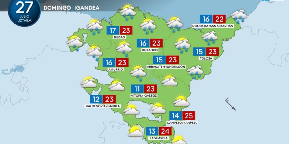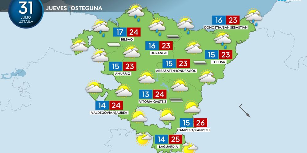 Un frente debilitado podrá dejar alguna llovizna esta noche EGURALDIA | Hoy tendremos un alivio térmico importante. Llegará un frente debilitado al final del día, que dejará nubes y puede que alguna llovizna en la costa durante la noche. No obstante, a ratos también se abrirán claros, sobre todo durante las horas centrales del día. …
