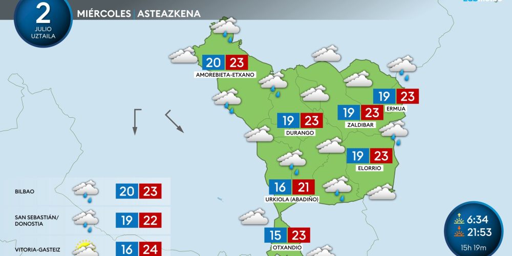 Viento del noroeste que hará que las desciendan temperaturas máximas EGURALDIA | El domingo algo más de nubosidad en la vertiente cantábrica, pero todavía con ratos soleados. Tendremos intervalos de nubes bajas por la mañana que deslucirán algo la jornada, pero que dejarán espacio para la apertura de claros, amplios claros en las horas centrales …