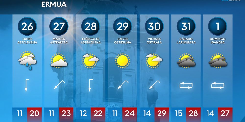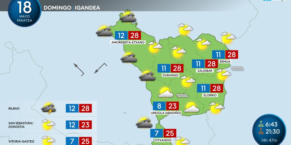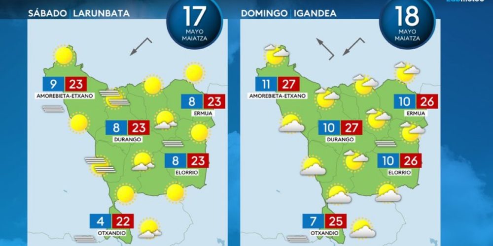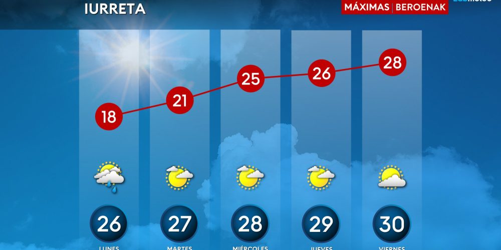 Las máximas irán subiendo hasta rozar los 30 grados a partir del jueves EGURALDIA | Poca lluvia, claros y cada día más calor puede ser el resumen que nos espera para esta próxima semana en Durangaldea, Las nubes de hoy lunes darán paso a unos días estables, primaverales y casi veraniegos. Lunes, mejoría El lunes …