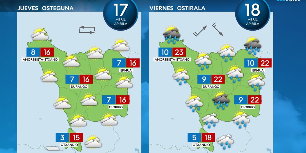 Se espera un descenso acusado de las temperaturas EGURALDIA | El sábado descenso acusado de las temperaturas y chubascos, sobre todo durante la primera mitad del día. El viento del noroeste será bastante molesto casi toda la jornada, sobre todo en la costa, zonas de montaña y en el Valle del Ebro. Cielos cubiertos durante …