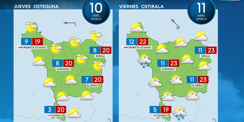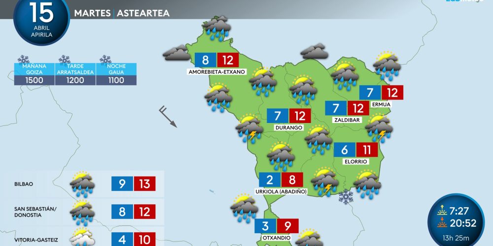 Las temperaturas todavía serán más otoñales que primaverales EGURALDIA | Tiempo variable para el miércoles. Aunque comenzaremos el día con restos de nubosidad y algo de lluvia, por la mañana quedará soleado; por ello, las primeras horas de la misma serán frías en el interior y es probable que hiele en puntos de la mitad …