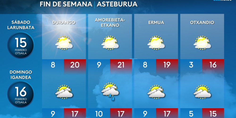 Regresa el tiempo soleado hoy domingo con máximas de 20 ºC en Durangaldea Leer más »