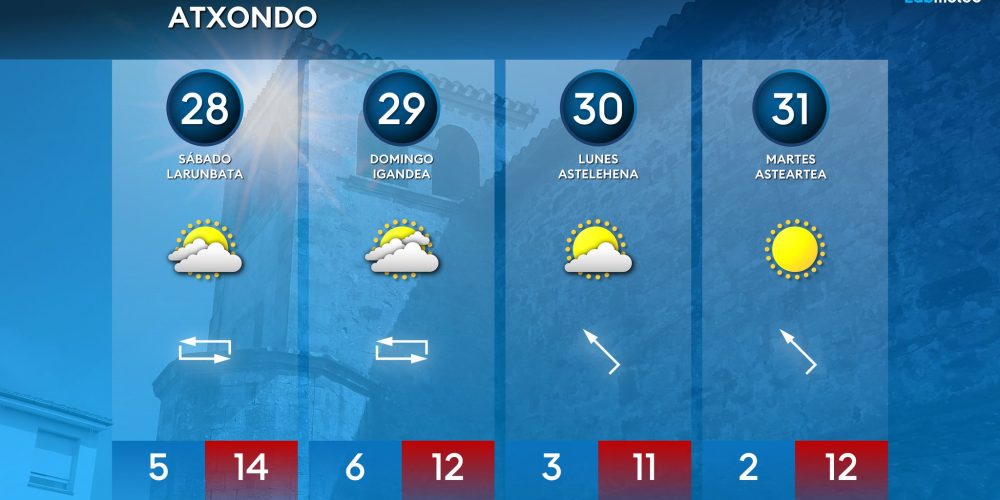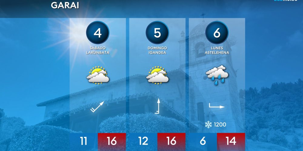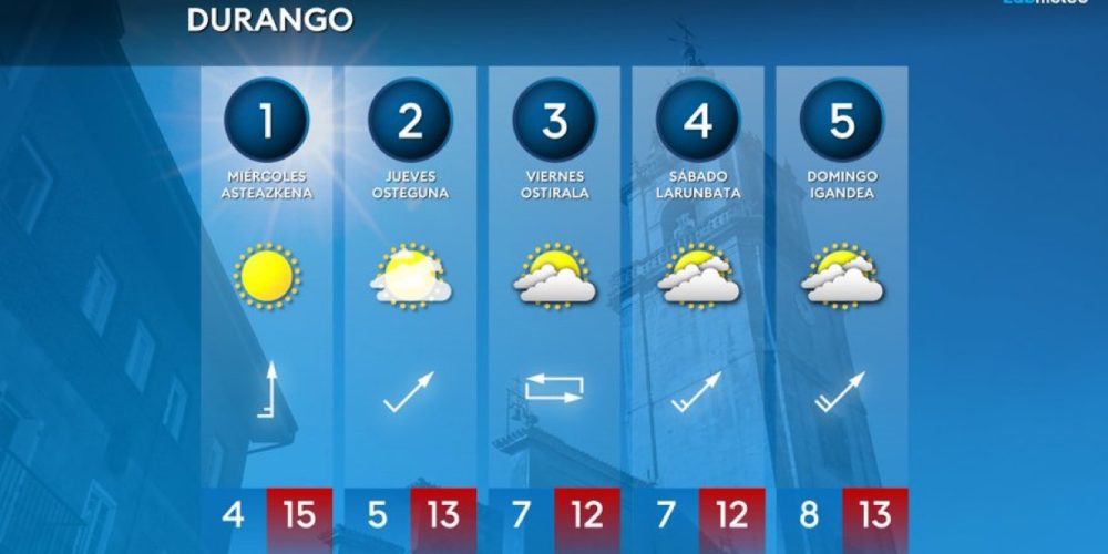Subirán las temperaturas, tanto las diurnas como las nocturna EGURALDIA | El sábado irá disminuyendo la nubosidad en el transcurso del día. Todavía bastante cubierto en los primeros compases de la jornada y con algunas lluvias dispersas que irán remitiendo durante la mañana. Por la tarde se abrirán claros, predominando las nubes medias y altas. …