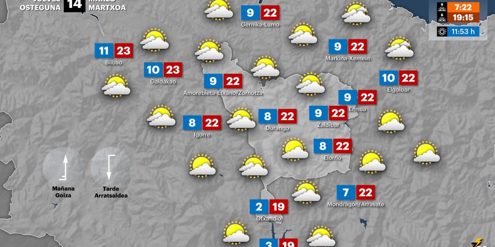 Mañana domingo se espera que siga subiendo el mercurio en la comarca EGURALDIA | El sábado ambiente soleado y ascenso de las temperaturas. Los termómetros volverán a rondar los 20-23 ºC. En el cielo poca nubosidad durante la mañana y algunas nubes medias y altas durante la segunda mitad del día, que no traerán mayores …
