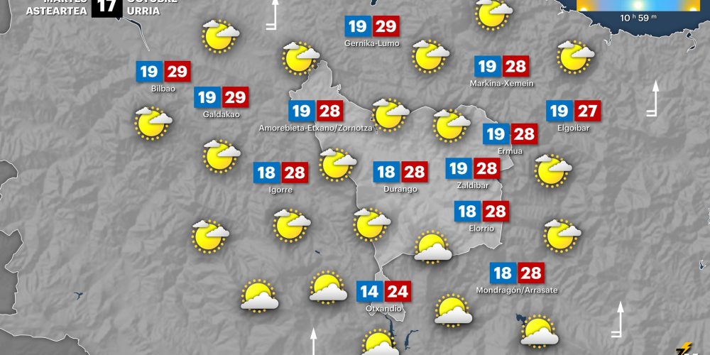 Las máximas descenderán en torno a tres grados, quedándose en los 23 EGURALDIA | El jueves el viento sur soplará con intensidad. Será del sur-suroeste, con rachas fuertes y muy fuertes, sobre todo durante la primera mitad del día. Esto permitirá que las temperaturas, a pesar de bajar ligeramente, sigan siendo templadas. En el cielo …