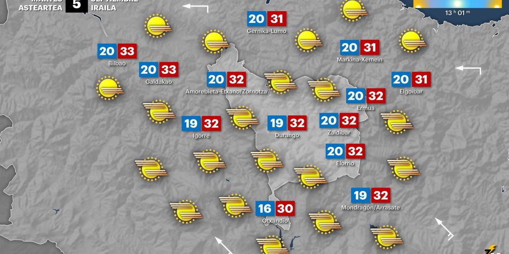 Las máximas continuarán en torno a los 30 grados en la comarca EGURALDIA | Hasta el lunes que viene todo hace indicar que seguiremos con ambiente veraniego, temperaturas en torno a los 30 grados, sol, pero sin descartar algún chubasco tormentos a últimas horas de la tarde y de madrugada. Viernes, soleado El viernes seguiremos …