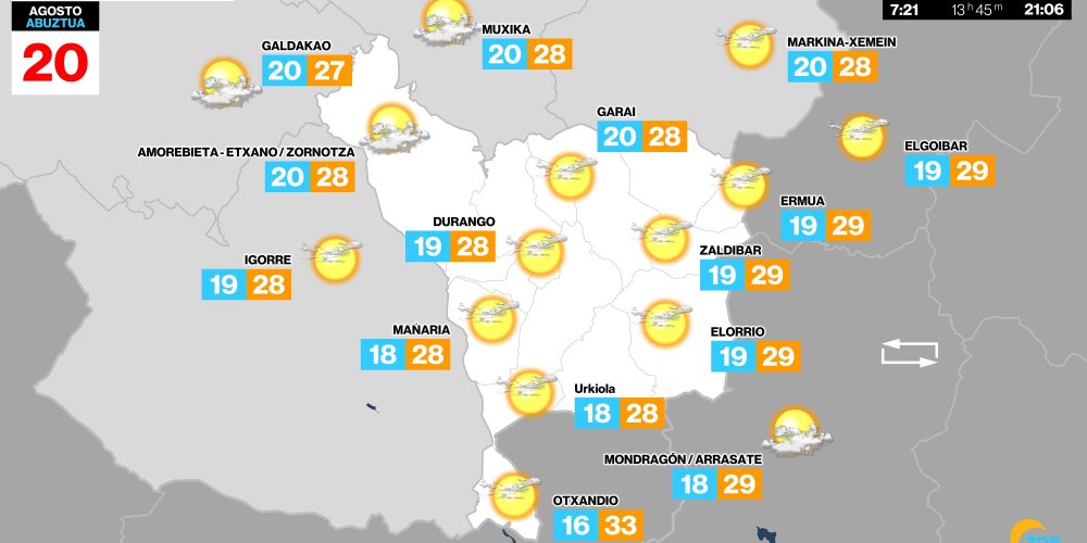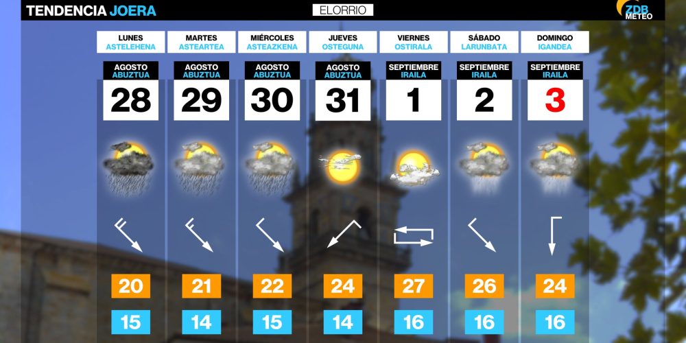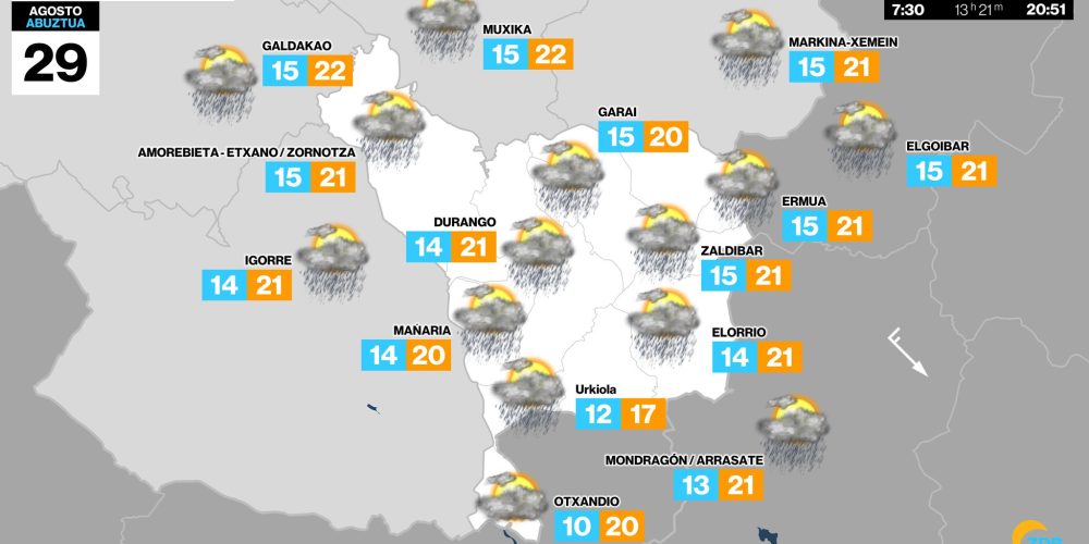 Las temperaturas no sufrirán cambios, en torno a los 20 grados EGURALDIA | El martes seguirá lloviendo, aunque lo hará de manera más intermitente y las precipitaciones no serán tan abundantes. Viento del oeste o noroeste, algo menos intenso que en días pasados, aunque aún dejará rachas fuertes por la tarde. Temperaturas sin muchos cambios. …