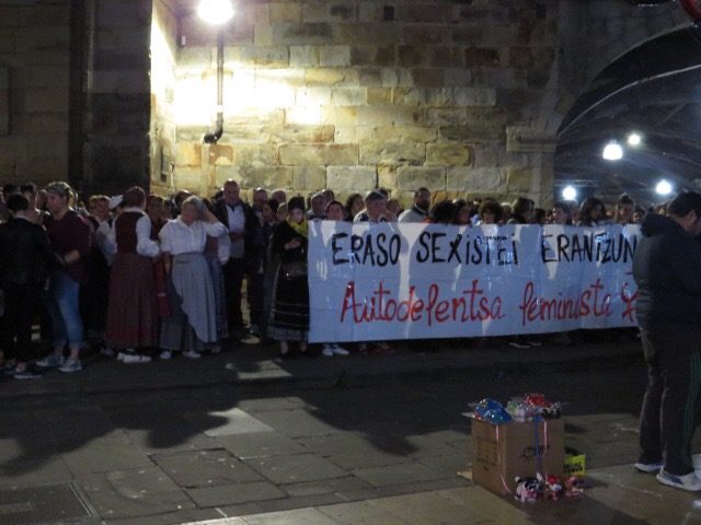 Decenas de personas se concentran en Santa María DURANGO.- Tras la agresión sexista de ayer la fiestas de Sanfaustos se han parado por espacio de quince minutos. Decenas de vecinos han salido a la calle y mientras los bares, txosnas y los conciertos se han parado frente al ataque machista de ayer. El DRT ha …