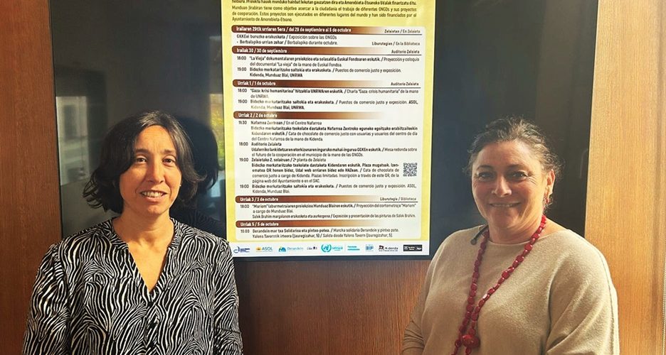 Hasta el 5 de octubre, se acogerán proyecciones, charlas, puestos de comercio justo y una marcha solidaria para visibilizar la labor de las ONGD AMOREBIETA-ETXANO | Amorebieta-Etxano celebra por segundo año la Semana de la Cooperación – Munduan Jirabiran, una iniciativa que busca acercar a la ciudadanía los proyectos de cooperación al desarrollo que diferentes …