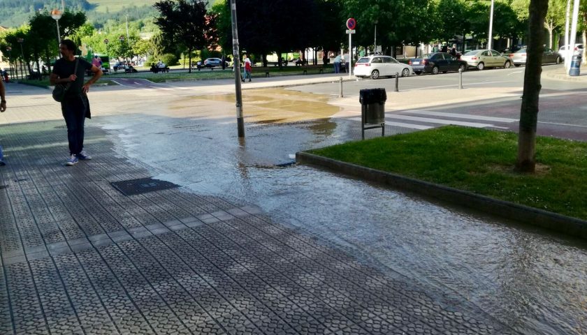 Imágenes de esta tarde de Landako ZUREDOT.- Esta tarde los vecinos de la zona Ibaizabal de Durango se sorprendían al ver como salía agua de una alcantarilla e inundaba las calles del barrio. De momento se desconoce que ha podido ocurrir. Los vecinos aseguran que seguramente se trata de la rotura de alguna tubería, aunque …
