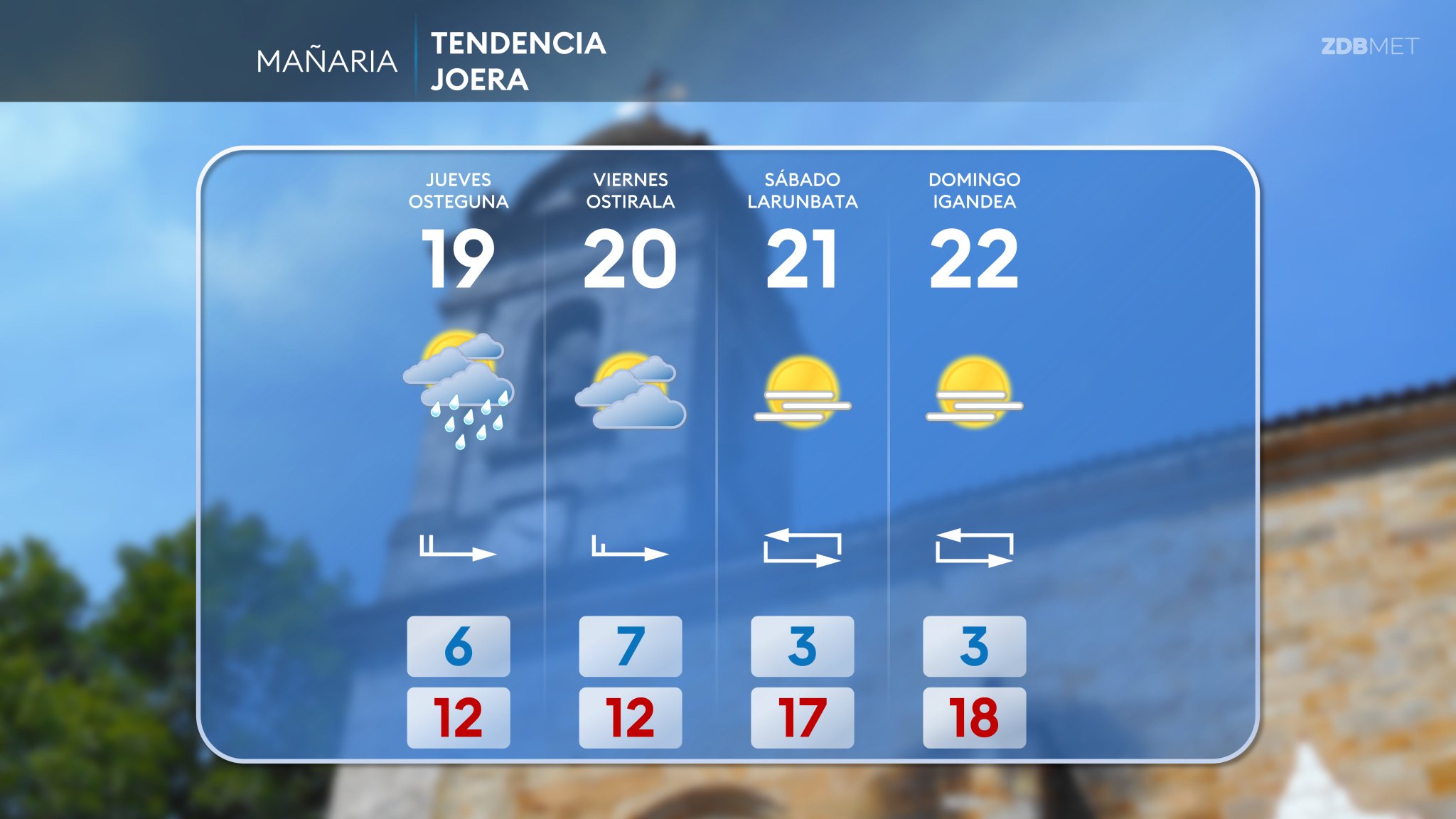 Temperaturas diurnas en notable descenso en Durangaldea EGURALDIA | El jueves el tiempo seguirá por parecidos derroteros. Viento fuerte del oeste, sobre todo en la costa, donde provocará mala mar; durante la segunda mitad del día predominará el noroeste. Cielo nuboso y chubascos, que a primeras horas pueden ir acompañados de tormenta y granizo; la …
