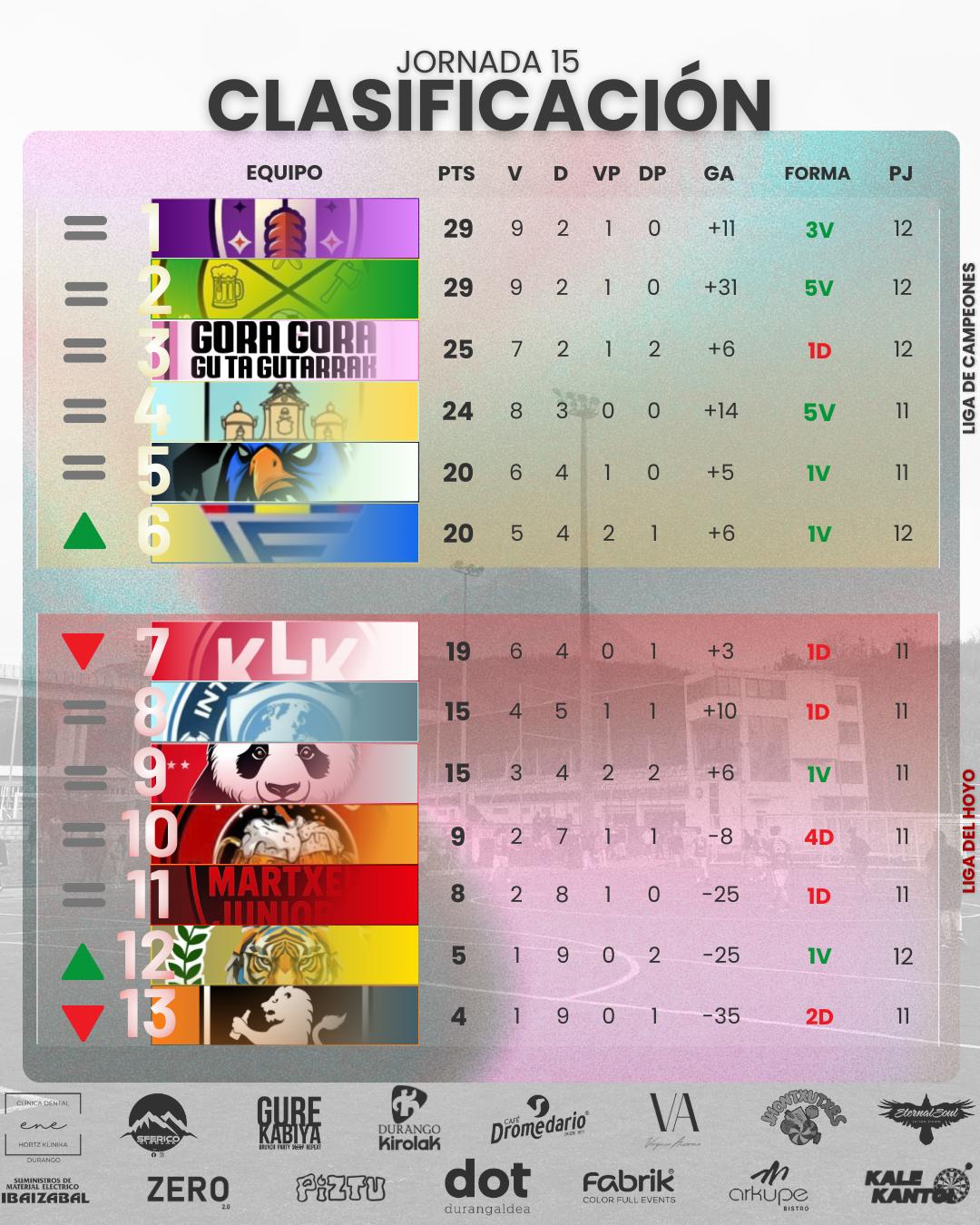 Equipos clasificados a la Liga del Hoyo: Kale Kantoi o Los Lojanos, Inter Panda, Internacional, Axpe United, Martxel Juniors, Tigres FC y Aston Birras